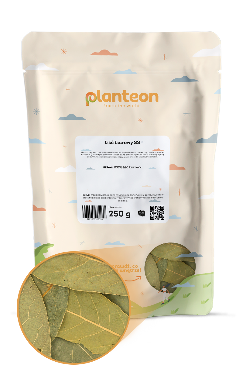 Liść laurowy to klasyczna przyprawa kuchni polskiej i śródziemnomorskiej, pozyskiwana z wiecznie zielonego drzewa Laurus nobilis. Jego charakterystyczny, lekko gorzkawy smak i ziołowo-korzenny aromat doskonale podkreśla walory smakowe potraw.
